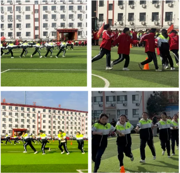 活动分为预赛与决赛两个阶段。预赛阶段,全体学生踊跃参与,在绿茵场上尽情挥洒汗水,以班级为单位展开团队比拼,为班级荣誉奋力奔跑,每一位同学都在过程中展现了强烈的集体荣誉感与拼搏精神。决赛阶段,每班精选男生十人、女生十人组成参赛队伍。赛场上,同学们紧紧相连,如“雪球”般齐心协力向前冲刺,动作整齐划一,彼此间的配合默契十足。班主任与体育老师在旁悉心指导、加油助威,场边观战的同学也热情呐喊,整个赛场充满了团结奋进的热烈氛围。