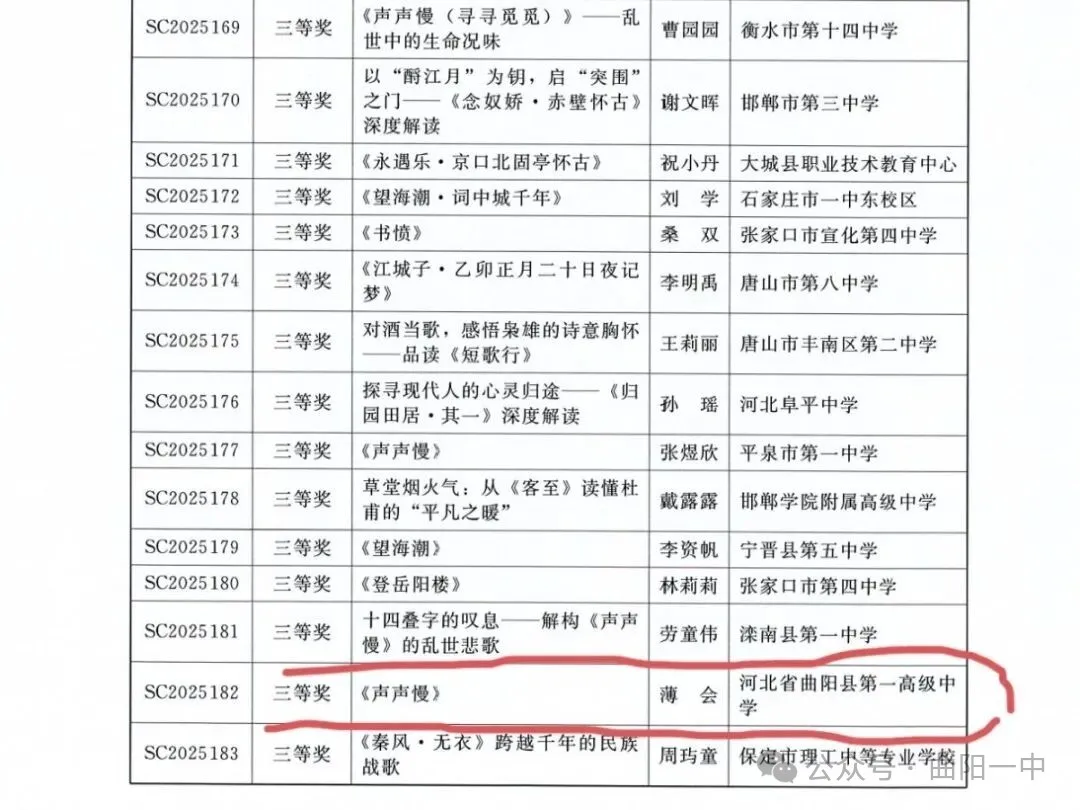 来源:曲阳一中