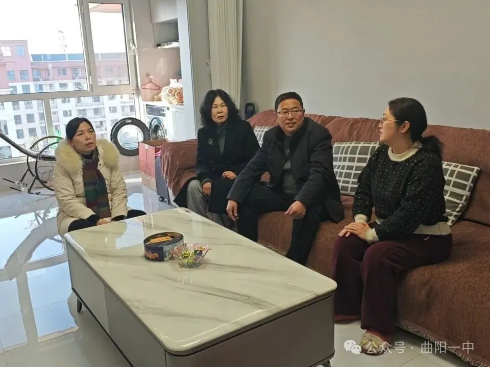 慰问过程中,校领导与教师及其家属亲切交谈,详细询问了他们的身体状况、家庭生活情况以及实际困难,并代表学校全体师生,对各位教师长期以来在教育教学岗位上的辛勤付出表示衷心的感谢和崇高的敬意。王书记深情表示,学校始终把教职工的冷暖挂在心间,特别是对生活困难的教职工,学校将不遗余力地通过各种渠道和方式给予关心与帮助,让大家感受到曲阳一中大家庭的温暖。